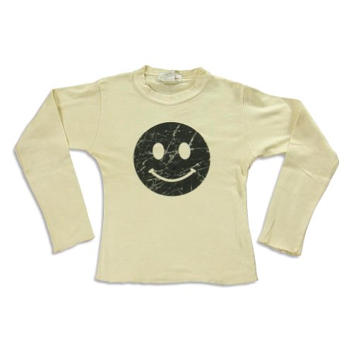 So Nikki - Girls Long Sleeve Smiley Face T-Shirt, Cream, Basic Tee, Ribbed Neck, Unfinished Hems, Distressed Smiley Face Graphic, This Garment Is Designed Especially For You Any Slight Imperfection Or Variation In The Colors Are Normal And Add To The Unique Design Of The Garment, 100% Cotton, Made In USA, #22528.../ So Nikki - Girls Long Sleeve Smiley Face T-Shirt, Cream (Size 10/12) / Clothes For The Girls